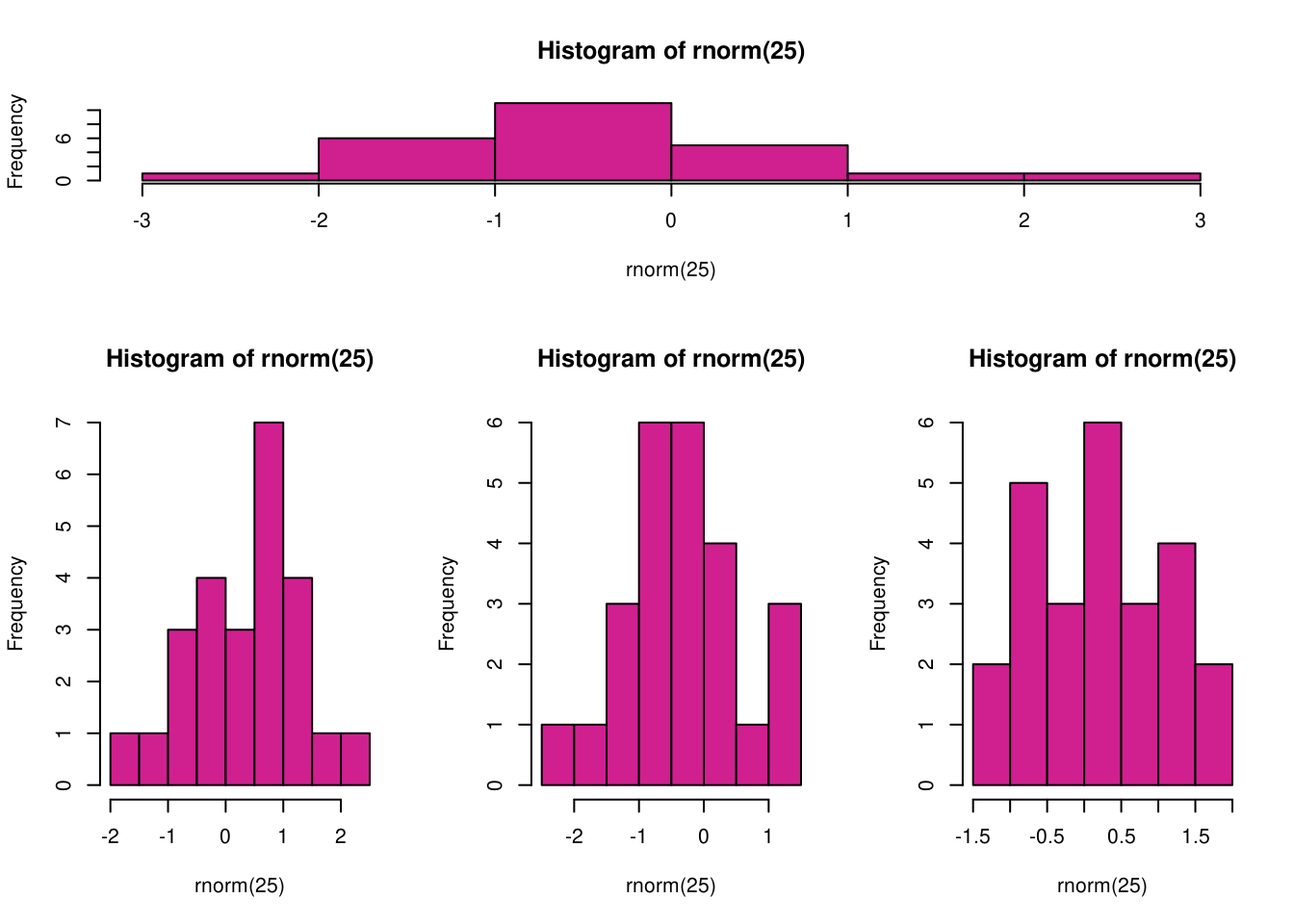 hist(rnorm(25), col = "VioletRed")