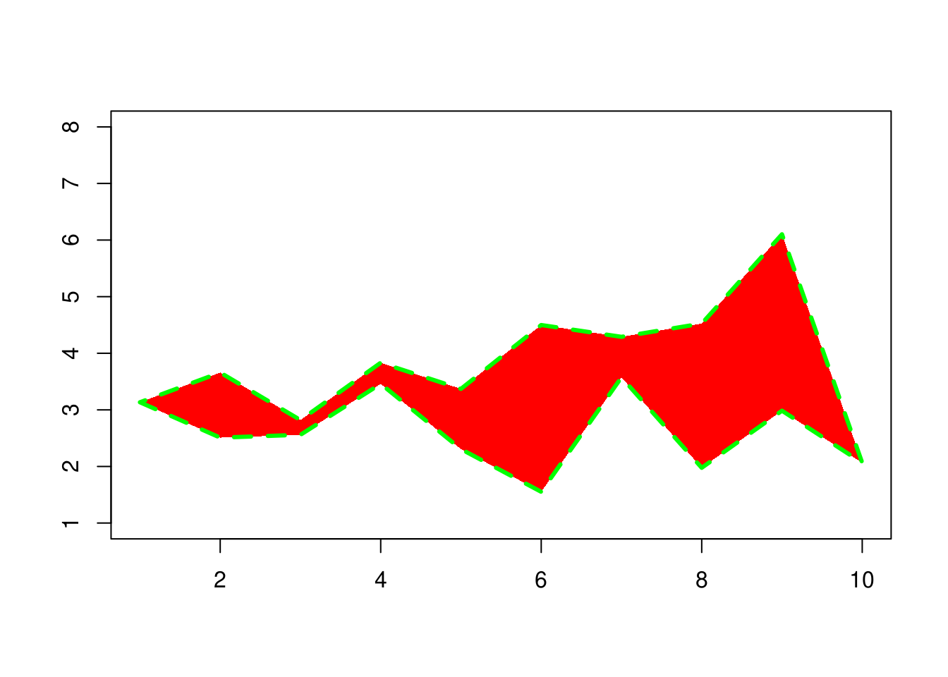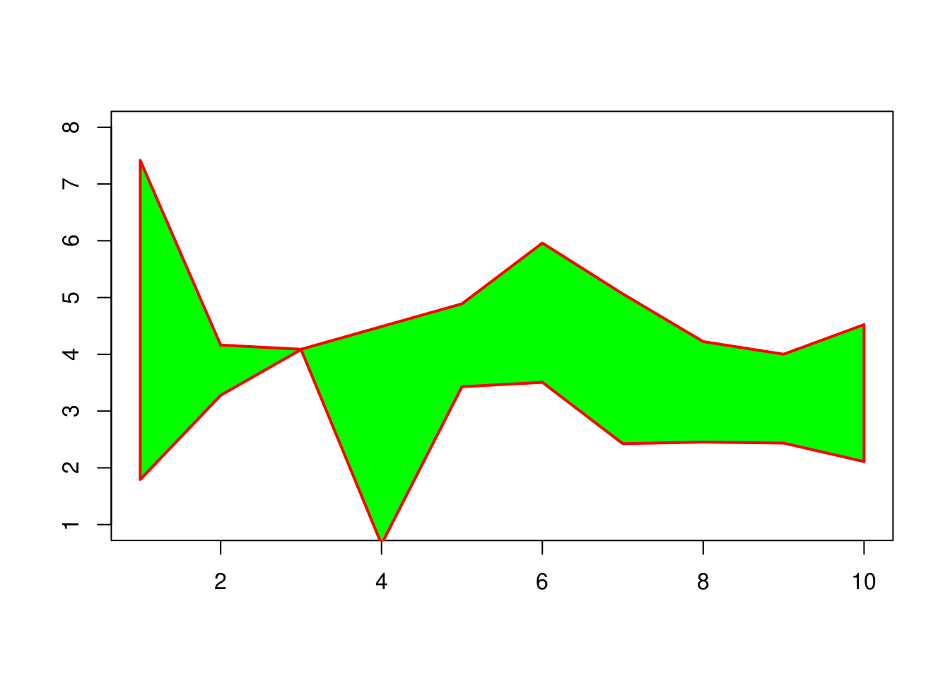 polygon(x, y, lwd = 2, col = 'green', border = "red")