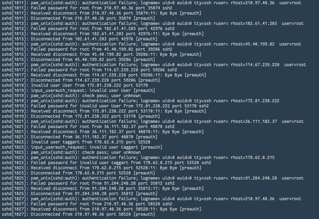 这个的时候立马去看了另一台 VPS,发现也有类似记录只是少一点,事情并不简单(汗…)。那么接下来改做什么就很简单了:加固 SSH 提升安全性,防止被他人暴力破解登录。